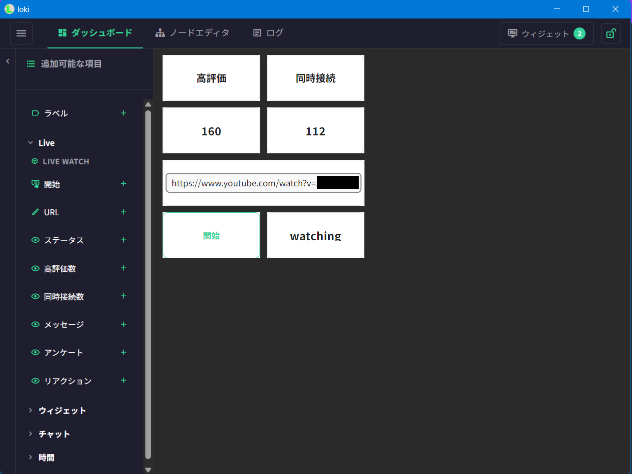 ノードを繋いでロジックを組み、OBSのブラウザソースに表示するウィジェットをリアルタイムで制御できます。